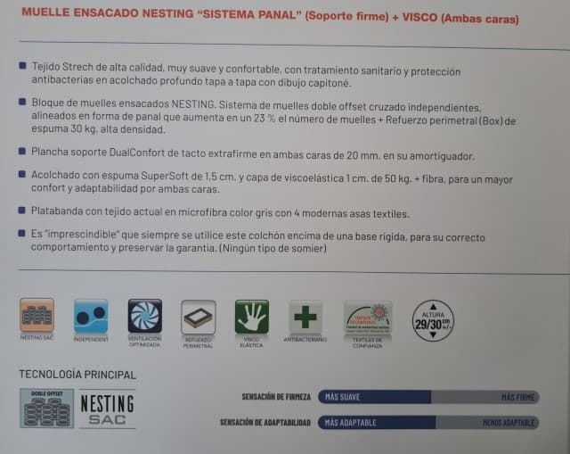 Acolchado con espuma SuperSoft de 1,5 cm y capa de viscolelástica 1cm de 50 kg. + fibra, para un mayor confort y adaptabilidad por ambas caras.