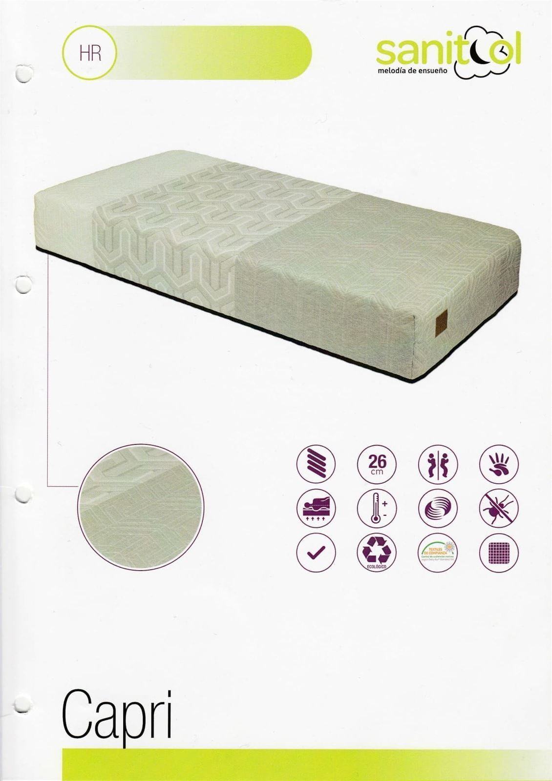 Comprar SANITCOL COLCHON CAPRI, consulte su precio con nosotros. Stock del producto según combinación, recogida en tienda. Disponible en ancho y largo: 80 cm y 200 cm; 90 cm y 200 cm; 105 cm y 200 cm; 120 cm y 200 cm; 135 cm y 200 cm; 140 cm y 200 cm; 150 cm y 200 cm; 160 cm y 200 cm; 180 cm y 200 cm; 200 cm y 200 cm; 80 cm y 180 cm; 90 cm y 180 cm; 105 cm y 180 cm; 120 cm y 180 cm; 135 cm y 180 cm; 140 cm y 180 cm; 150 cm y 180 cm; 160 cm y 180 cm; 180 cm y 180 cm; 200 cm y 180 cm; 80 cm y 190 cm; 90 cm y 190 cm; 105 cm y 190 cm; 120 cm y 190 cm; 135 cm y 190 cm; 140 cm y 190 cm; 150 cm y 190 cm; 160 cm y 190 cm; 180 cm y 190 cm; 200 cm y 190 cm.