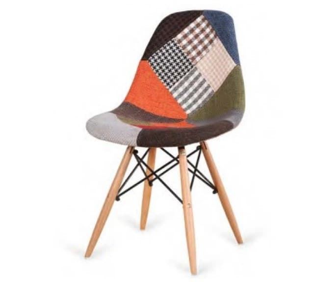 Silla de diseño tapizada en PATCHWORK con patas macizas de madera de HAYA.